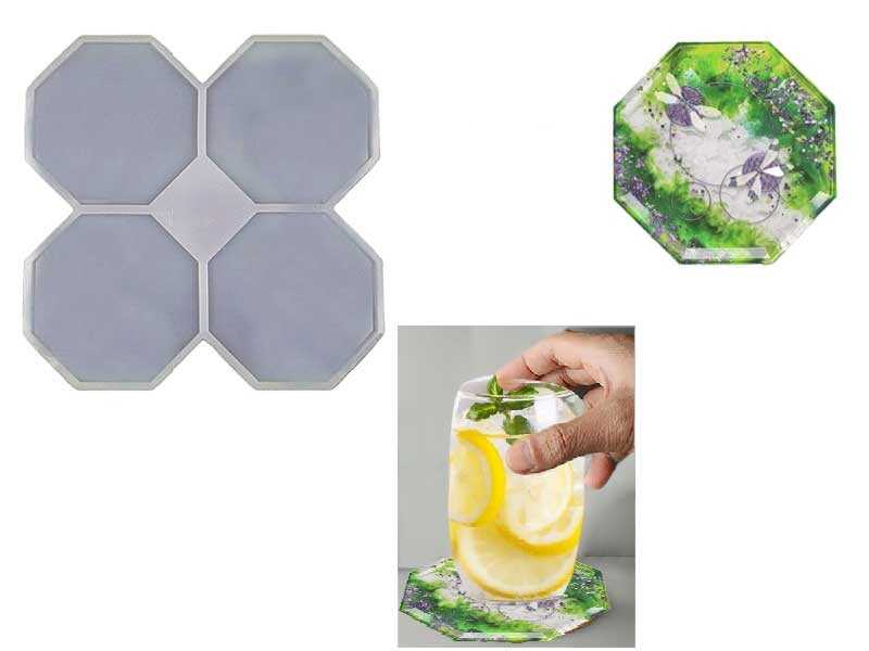 4'lü Altıgen Bardak Altlığı Epoksi Reçine Kalıbı KHE424