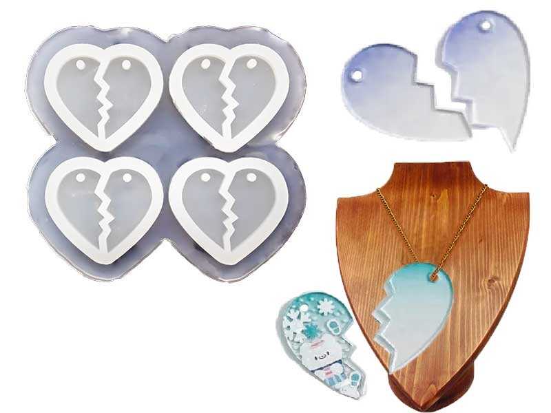 4'lü Çoklu Kırık Kalp Kolye Epoksi Reçine Kalıbı KHE580