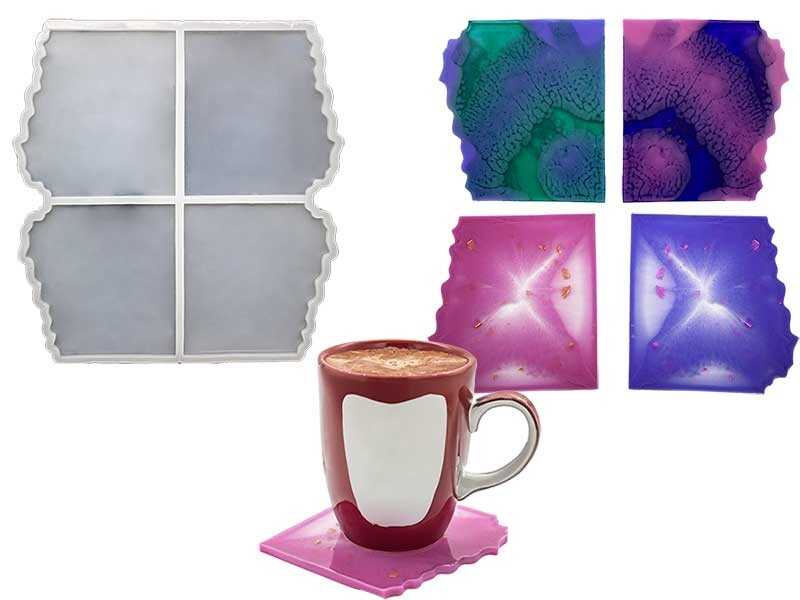 4'lü Tırtıklı Bardak Altlığı Epoksi Reçine Kalıbı KHE394