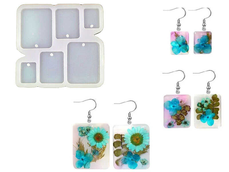 6'lı Dikdörtgen Küpe Epoksi Reçine Kalıbı KHE411