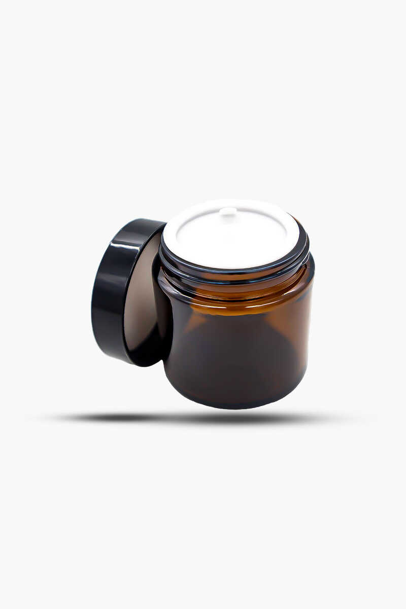 - Doğal kremler, mumlar, aromaterapi formülleri yapıp saklayabileceğiniz, amber renk cam kavanoz, siyah kapak ve iç çontalı.