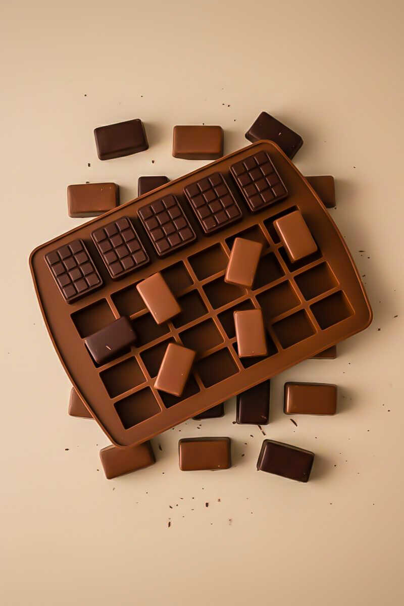 * Detaylı ve Estetik Form: Üst sıradaki 5 adet mini çikolata tableti dokusu, ürünlerinize profesyonel bir görünüm kazandırırken; alt kısımdaki düz dikdörtgen bölmeler minimalist ve modern tasarımlar yapmanıza olanak sağlar.